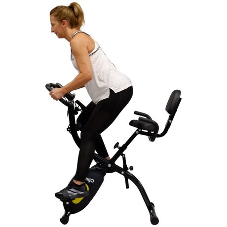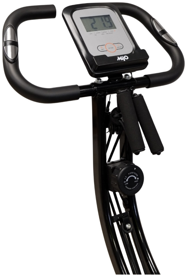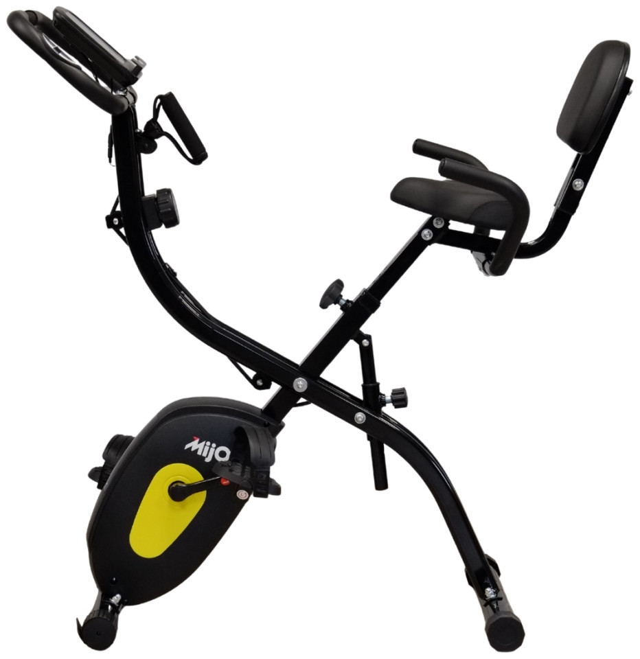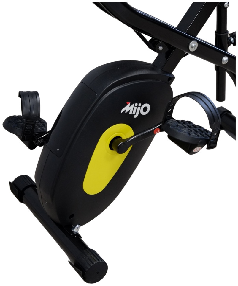 Αναδιπλούμενο Ποδήλατο Γυμναστικής με πλάτη Fit-X-Pedal της ελληνικής εταιρείς Mijo, κατασκευασμένο με άνετο κάθισμα με πλάτη για να παρέχει άνεση και υποστήριξη καθόλη την διάρκεια άσκησης, καθιστώτας το ιδανικό για άτομα με προβλήματα στην μέση. Διαθέτει δυνατότητα ρύθμισης του καθίσματος για εύρεση της ιδανική θέσης και ηλεκτρονικό καντράν που παρέχει ενδείξεις για την εκγύμναση σας όπως την ταχύτητα, τον χρόνο, την απόσταση που έχετε διανύσει, τις θερμίδες που καταναλώσατε, καθώς και τον καρδιακό παλμό. Με αναδιπλούμενο σχεδιασμό για να καταλαμβάνει ελάχιστο χώρο, με κομψό και στιβαρό σκελετό, κατασκευασμένο με μαγνητικό τροχό 3Kg, 10 επίπεδα αντίστασης για να προσαρμόζεται ανάλογα με τις ανάγκες κάθε χρήστη και μέγιστο βάρος χρήστη 120Kg, το ποδήλατο γυμναστικής με πλάτη Fit-X-Pedal είναι το όργανο γυμναστικής που δεν πρέπει να λείπει από κανένα σπίτι!