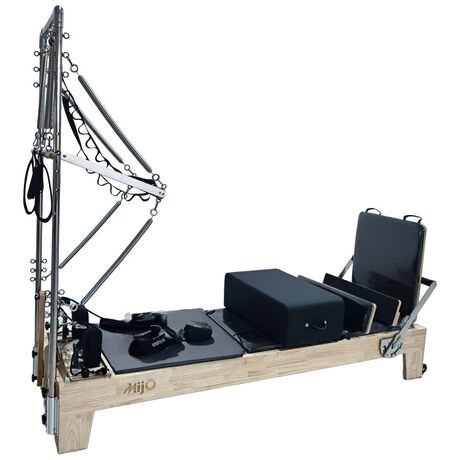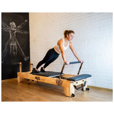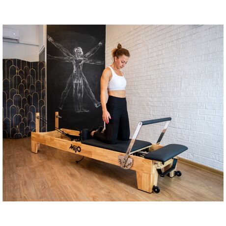 Το Ξύλινο Κρεβάτι PilatesReformer with Tower Mijo (Κωδ. 23296) είναι η ιδανική επιλογή για επαγγελματίες και ερασιτέχνες του Pilates. Κατασκευασμένο από μασίφ ξύλο Ευρωπαϊκής οξυάς, προσφέρει σταθερότητα και αντοχή. Διαθέτει έξι ελατήρια με διαφορετική διαβαθμισμένη αντίσταση, επιτρέποντας προσαρμογή στις ανάγκες κάθε χρήστη. Η κινούμενη πλατφόρμα με ρόδες πολυουρεθάνης εξασφαλίζει ομαλή κύλιση, ενώ η μπάρα ποδιών ρυθμίζεται σε 7 επίπεδα για μέγιστη άνεση. Το προσκέφαλο διαθέτει 2 επίπεδα ρύθμισης, προσφέροντας επιπλέον υποστήριξη κατά τη διάρκεια των ασκήσεων. Η ταπετσαρία από επαγγελματικό τεχνόδερμα υψηλής αντοχής εξασφαλίζει μακροχρόνια χρήση. Με διαστάσεις 240x70x35 cm και αντοχή χρήστη έως 150 kg, το κρεβάτι είναι ιδανικό για κάθε επίπεδο εμπειρίας. Περιλαμβάνει αξεσουάρ όπως Double Loop, Jumb Board και Sitting Box. Η συσκευασία του έχει διαστάσεις 254x78x39 cm και το συνολικό βάρος φτάνει τα 130 kg. Εγγύηση 2 ετών για επαγγελματική χρήση και 1 έτους για ελατήρια, σκοινιά, τροχαλίες και ρόδες.